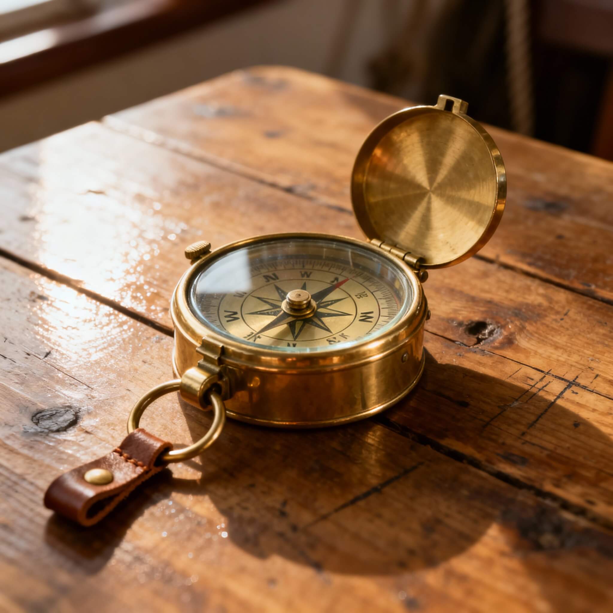 Stylowy kompas z lat 70. w mosiężnej obudowie. Funkcjonalny i dekoracyjny jednocześnie.